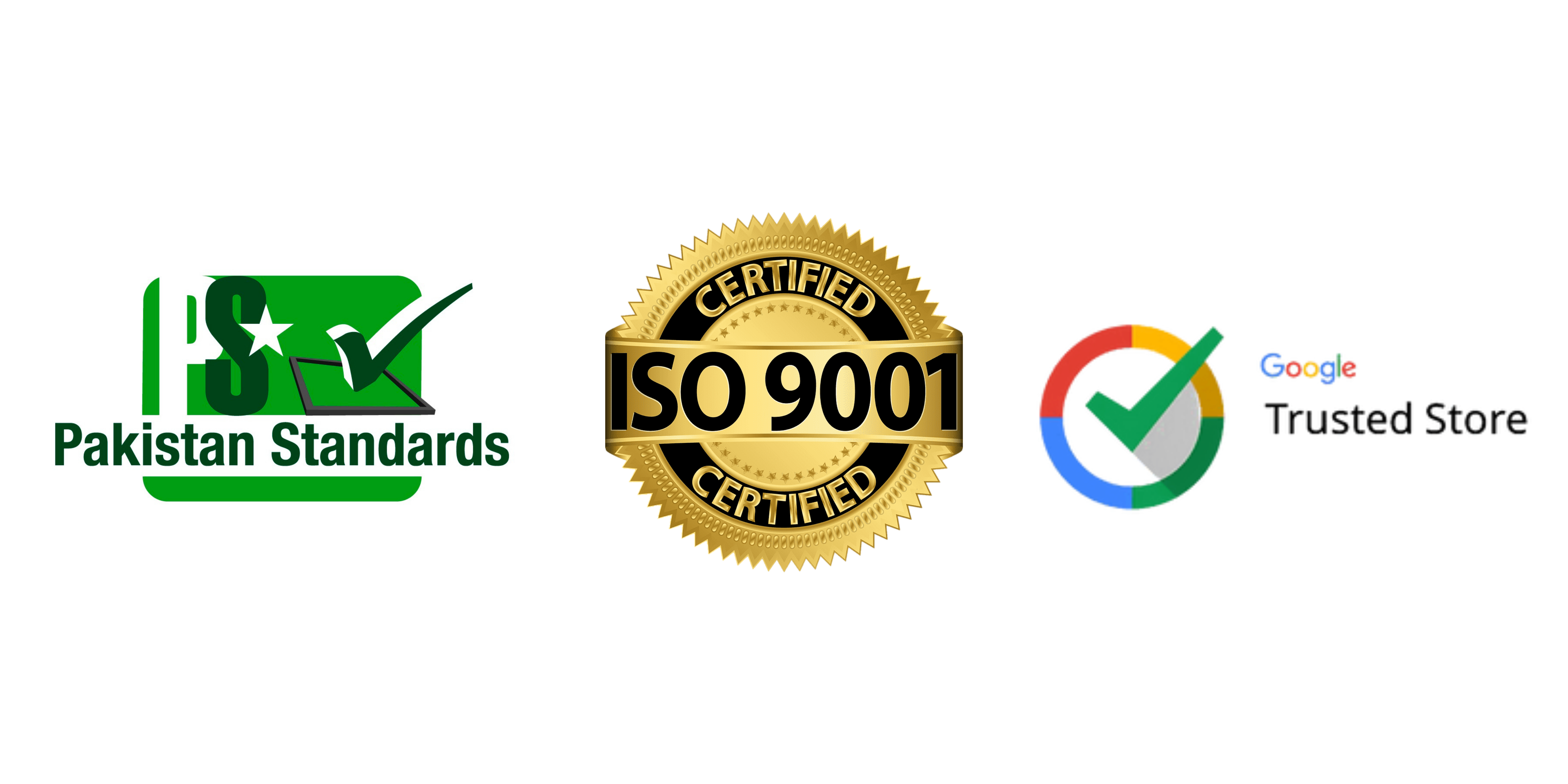 Shop with confidence! We're PSQC certified, ensuring our products meet Pakistani standards for quality and safety. Our ISO 9001 certification demonstrates our commitment to excellence, while our Google Trusted Store badge guarantees a seamless shopping experience.This option is clear, concise, and effectively communicates the value of your certifications. It also emphasizes the benefits of shopping with confidence, which can help build trust with your customers.
